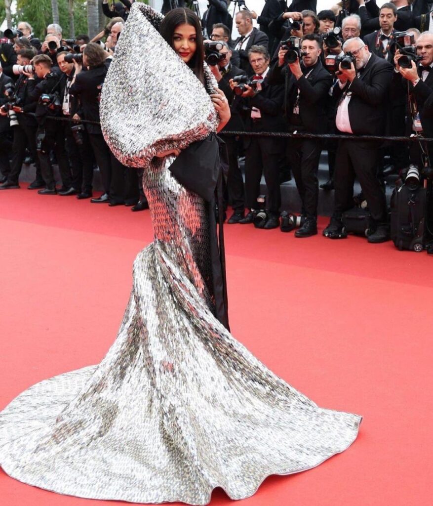 Aishwarya tampil dengan gaun bernuansa hitam dan silver. Penampilannya ini menuai hujatan dan kritikan netizen. Bukan yang pertama kali sih, Aish menuai hujatan saat tampil di karpet merah Festival Fim Cannes 2023.