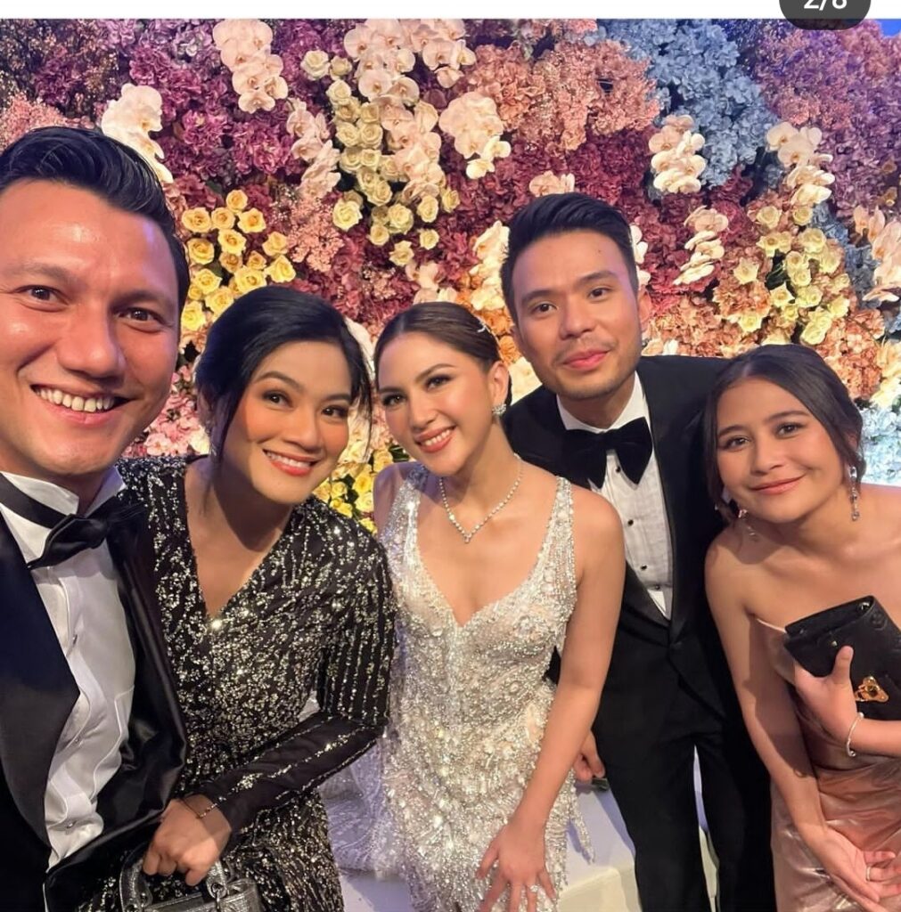 Christian dan Titi mengambil kesempatan foto bersama dengan pasangan pengantin baru. Titi mengunggah di akun instagramnya, menyebut: ke kondangan sama suamiku @christiansugiono. Seolah meredakan isu yang bergejolak.
