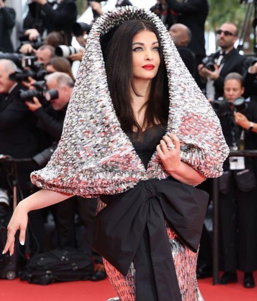 Aishwarya tampil dengan gaun bernuansa hitam dan silver. Penampilannya ini menuai hujatan dan kritikan netizen. Bukan yang pertama kali sih, Aish menuai hujatan saat tampil di karpet merah Festival Fim Cannes 2023.