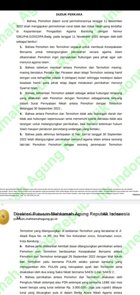 Netizen membongkar nomor perkara permohonan cerai talak Alshad Ahmad terhadap Nissa. Di situ tertulis nomor 5361/Pdt.G/2022/PA.Badg dengan nama Alshad Kautsar Ahmad bin Mansur Ahmad × Nissa Asyifa Binti Ganjar Sudaya.