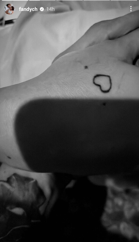 Di instagram storiesnya, Fandy mengunggah beberapa foto hitam putih. Salah satunya nampak foto di ranjang sepertinya, dua tangan yang saling menggenggam di atas selimut putih. Di tangan itu terukir tato hati.