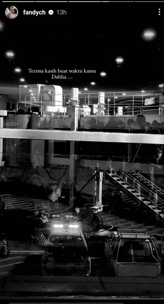Minggu (21/5), Fandy Christian seolah mengekspresikan kesenduan lewat unggahan instagram storiesnya, dan tulisan di Feed, "Sebuah surat untuk Dahlia."