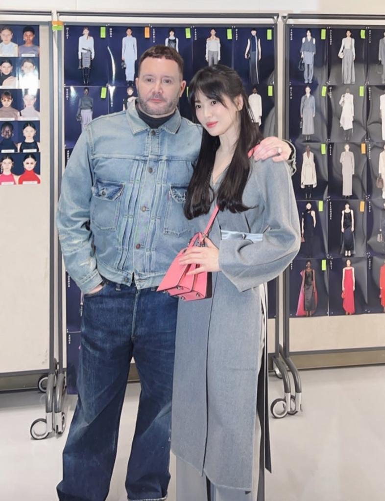 Sebagai duta merek mewah tersebut, Song Hye Kyo berpose bersama Direktur Artistik Fendi, Kim Jones.