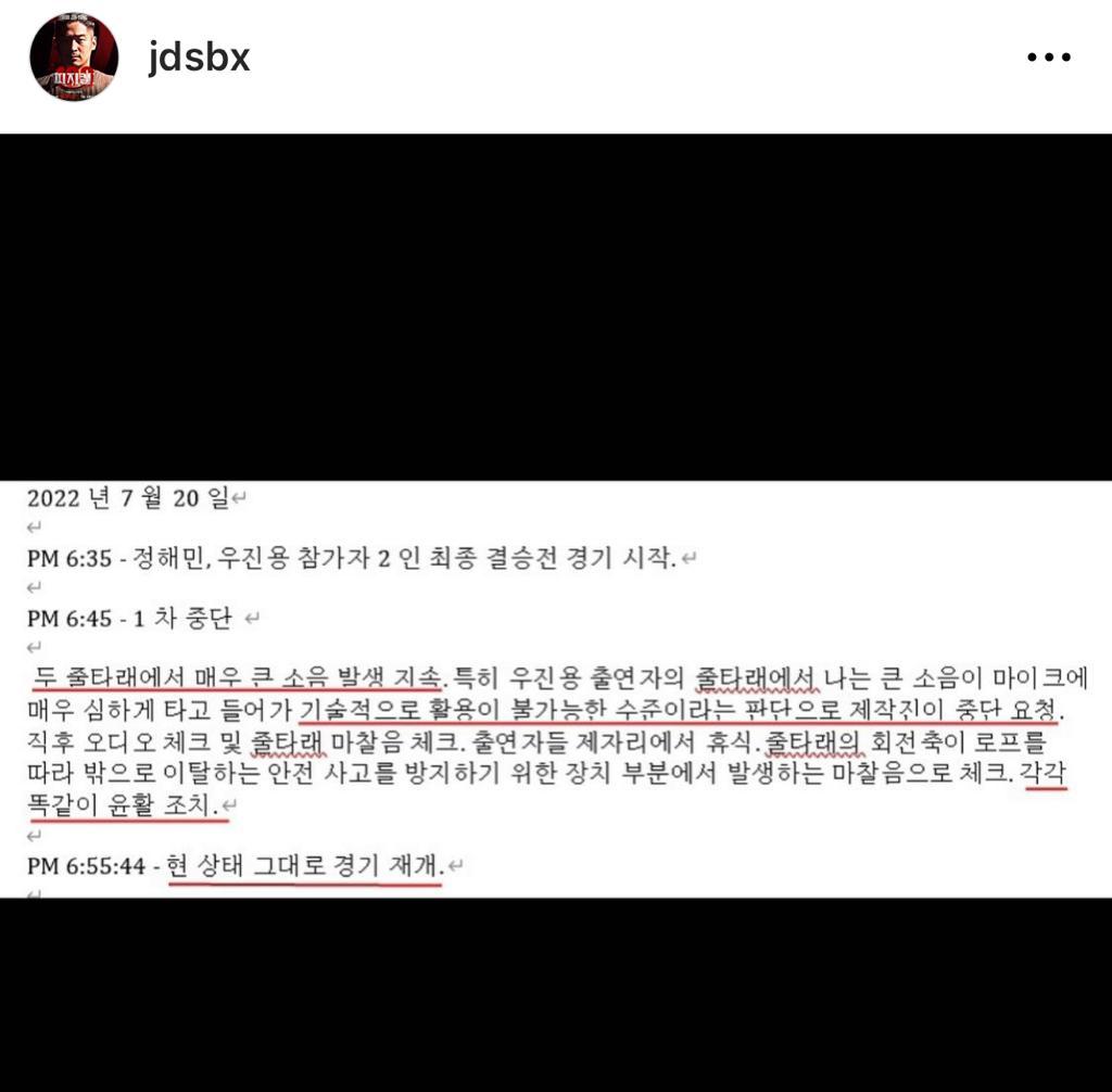 Woo Jin Yong memposting tangkapan layar catatan tertulis tentang detail pertandingan tarik tali yang direkam pada 20 Juli 2022, yang diungkapkan tim produksi melalui YTN Star.